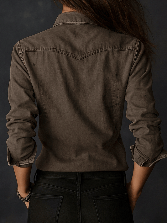 Vintage Washed Taupe Western Slim Fit Button-Down Shirt